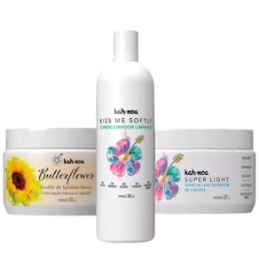 Kit Finalizador Kah Noa Para Cacheadas (3 Itens) Kit Finalizador Kah Noa para Cacheadas (3 Itens) Condicionador Limpante Kah-Noa Kiss Me Softly 300ml Indicado para (NO/LOW POO) condicionador feito de agentes naturais limpantes e hidratantes. Ideal para a rotina no poo, ou seja, para quem não usa silicones no cabelo. - Livre de sulfato- Livre de parabeno- Livre de silicones- Livre de petrolatos - Não contém ingredientes de origem animal- Não testado em animais