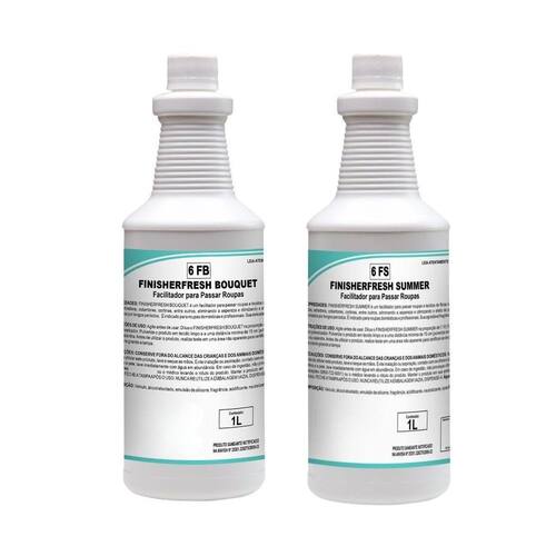 Kit FinisherFresh 1L - Fragrâncias Summer e Bouquet Apresentamos o Kit FinisherFresh , contendo as fragrâncias Summer e Bouquet em embalagens de 1 litro, ideais para quem busca qualidade e eficiência na passadoria de roupas e tecidos em ambientes profissionais. Este kit é perfeito para lavanderias, hotéis, clínicas e demais estabelecimentos que necessitam de um acabamento superior e duradouro em seus tecidos, garantindo maciez e um aroma agradável e resistente. Componentes do KitFinisherFresh Summer 1L Função: Facilita a passadoria e proporciona suavidade em tecidos de fibras naturais e sintéticas, como toalhas, lençóis, e cortinas.Fragrância: Com uma essência refrescante, a fragrância Summer resiste a altas temperaturas, oferecendo um perfume duradouro e agradável.Modo de Uso: Diluir o produto na proporção de 1:10 100 mL para 1 L de água em um pulverizador. Agitar bem antes do uso e aplicar em névoa sobre o tecido limpo, mantendo uma distância mínima de 15 cm, antes de iniciar a passadoria.Finisherfresh Bouquet 1L Função: Facilita o processo de passadoria, suavizando tecidos e eliminando aspereza para um toque mais macio e .Fragrância: Delicada fragrância floral que, além de resistir a altas temperaturas, agrega um toque de sofisticação e bem-estar ao ambiente.Modo de Uso: Diluir na proporção de 1:10 100 mL para 1 L de água . Agitar bem, pulverizar em névoa sobre o tecido limpo e iniciar a passadoria.Benefícios TécnicosAlta Resistência a Temperaturas: As fragrâncias foram desenvolvidas para manter sua intensidade mesmo em altas temperaturas, proporcionando um perfume duradouro durante e após a passadoria.Eficácia e Suavidade: Ambos os produtos são formulados para suavizar as fibras, facilitando o processo de passadoria e melhorando o toque dos tecidos.Versatilidade e Economia: Compatíveis com uma variedade de tecidos e ambientes, ambos os produtos oferecem excelente rendimento na diluição indicada, maximizando o custo-benefício. Registro ANVISA: Produto saneante notificado sob n 25351.326275/2009-33. Marca: Não Informado