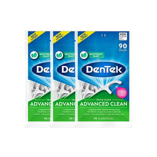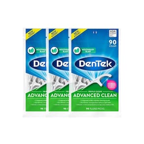 - Kit Contém: 3 pacotes de Fio Dental Dentek Floss Picks Triple Clean Advanced Clean com 90 unidades cada