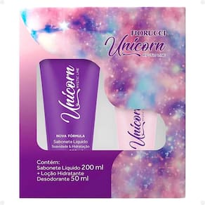 O Kit Fiorucci Unicorn é uma celebração da magia e encanto do mundo místico dos unicórnios. Este kit inclui um Sabonete Líquido e uma Loção Hidratante Desodorante, todos da mesma fragrância da deo colônia Unicorn, cativante e mágica. Desenvolvido para mulheres de todas as idades, este kit é perfeito para aquelas que desejam trazer um toque de fantasia e romantismo para seu dia a dia. A fragrância Frutal Gourmand é um convite para uma jornada sensorial que transforma a realidade em um mundo mágico.