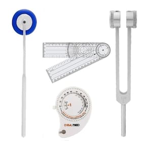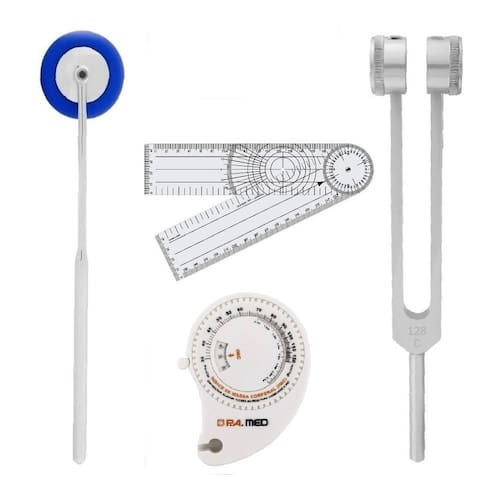 INCLUSO NO KIT 1- Martelo ( Modelo a ser Escolhido ) 1- Diapasão 128 HZ 1- Trena PAMED 150 CM 1- Goniometro 36 cm em PVC O Martelo BUCK, TAYLOR Ou BAMBINSK para reflexos neurológico é indicado para uso em procedimentos ambulatoriais como também, para aferir sensibilidade e reflexos neurológicos. Os martelos de percussão neural são indicado para induzir a resposta miotática, plantar e cutânea, nos exames de rotina para avaliação dos reflexos do paciente. Martelo para Reflexos Neurológicos BIC; Cabeça com pontas de PVC ; Examinador de reflexo; Confeccionado em metal; Não Estéril e Reutilizável; Qualidade e confiança BIC. Material do Cabo: Metal cromado Material Cabeça: PVC Sintético Instruções de Uso: Deve ser utilizado de acordo com a técnica adotada pelo profissional de saúde. Advertências e Precauções: Não deixar o martelo em superfície molhada ou excesso de calor / Deve ser utilizado por profissional habilitado / Manter o instrumento longe do alcance de crianças. Garantia: 1 ano garantia contra defeito de fabricação Marca: BIC Bem Estar Cadastro na ANVISA: 81535970006 O Diapasão médico STARK BIC 128 CPS com fixador é um instrumento utilizado por profissionais da saúde na avaliação e testes audiológicos na verificação de perda auditiva. O diapasão serve como fonte condutora para a transmissão dos sons por via aérea e via óssea e pode ajudar a direcionar o diagnostico nos casos de lesão do sistema auditivo, tanto relativo ao local quanto à causa da lesão. DIAPASÃO 128 HZ Modelo: 128HZ Material: Alumínio Comprimento Total: 216mm Largura Total: 41mm Garantia: 1 ano contra defeito de fabricação Marca: BIC Cadastro na ANVISA: 81535970007 FITA ANTROPOMÉTRICA – P.A. MED vai te ajudar a medir com precisão as circunferências. Também é utilizada para medir os índices de cintura quadril e massa corpórea. As medidas antropométricas são usadas para avaliar o tamanho, forma e composição do corpo humano. Refere-se ao estudo quantitativo das características físicas e serve como uma ferramenta fundamental para determinar objetivamente as mudanças na composição corporal. ESPECIFICAÇÕES TÉCNICAS FITA ANTROPOMÉTRICA Amplitude de Medição: 0 a 150cm (1,5 metros) Resolução da Escala: Milímetros Material: Caixa plástica contendo uma trena de fita de fibra de vidro inelástica e maleável. Medida: 7,5cm (comprimento) x 7,5cm (Altura) x 2,8cm (Largura) Peso: 50gr Indicação de Uso / Finalidade: Utilizada para verificação de perímetros e circunferências corporais de indivíduo de qualquer faixa etária. Modo de Usar: Conforme Técnica do usuário. Advertências e Precauções: Evitar quedas e batidas. Condições de Armazenamento: Armazenar em local seco e arejado. Contém na Embalagem: 01 Fita Antropométrica. Validade: Indeterminada. Garantia: 90 Dias contra defeito de fabricação. Cadastro da ANVISA: Isento GONIOMETRO GRANDE Goniômetro Universal em plástico transparente com 2 réguas para mensuração de amplitude articular. Sistema de transferidor de 0º a 360º . Medidas aproximadas 21,5 x 5cm (CxL). Largura: 5 cm Profundidade: 0,75 mm Peso: 0.01Kg Comprimento: 21,5cm
