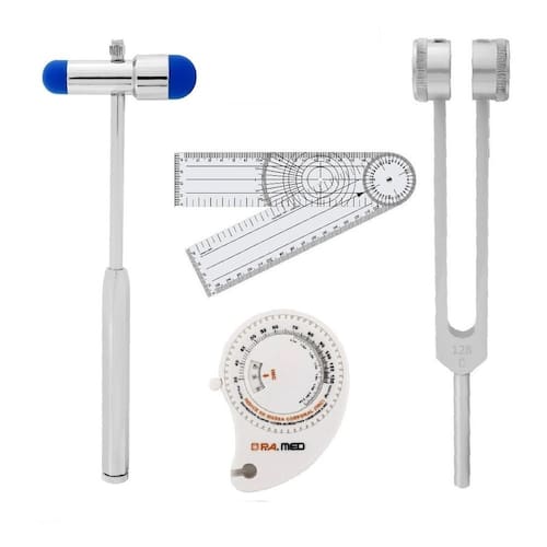 INCLUSO NO KIT 1- Martelo ( Modelo a ser Escolhido ) 1- Diapasão 128 HZ 1- Trena PAMED 150 CM 1- Goniometro 36 cm em PVC O Martelo BUCK, TAYLOR Ou BAMBINSK para reflexos neurológico é indicado para uso em procedimentos ambulatoriais como também, para aferir sensibilidade e reflexos neurológicos. Os martelos de percussão neural são indicado para induzir a resposta miotática, plantar e cutânea, nos exames de rotina para avaliação dos reflexos do paciente. Martelo para Reflexos Neurológicos BIC; Cabeça com pontas de PVC ; Examinador de reflexo; Confeccionado em metal; Não Estéril e Reutilizável; Qualidade e confiança BIC. Material do Cabo: Metal cromado Material Cabeça: PVC Sintético Instruções de Uso: Deve ser utilizado de acordo com a técnica adotada pelo profissional de saúde. Advertências e Precauções: Não deixar o martelo em superfície molhada ou excesso de calor / Deve ser utilizado por profissional habilitado / Manter o instrumento longe do alcance de crianças. Garantia: 1 ano garantia contra defeito de fabricação Marca: BIC Bem Estar Cadastro na ANVISA: 81535970006 O Diapasão médico STARK BIC 128 CPS com fixador é um instrumento utilizado por profissionais da saúde na avaliação e testes audiológicos na verificação de perda auditiva. O diapasão serve como fonte condutora para a transmissão dos sons por via aérea e via óssea e pode ajudar a direcionar o diagnostico nos casos de lesão do sistema auditivo, tanto relativo ao local quanto à causa da lesão. DIAPASÃO 128 HZ Modelo: 128HZ Material: Alumínio Comprimento Total: 216mm Largura Total: 41mm Garantia: 1 ano contra defeito de fabricação Marca: BIC Cadastro na ANVISA: 81535970007 FITA ANTROPOMÉTRICA – P.A. MED vai te ajudar a medir com precisão as circunferências. Também é utilizada para medir os índices de cintura quadril e massa corpórea. As medidas antropométricas são usadas para avaliar o tamanho, forma e composição do corpo humano. Refere-se ao estudo quantitativo das características físicas e serve como uma ferramenta fundamental para determinar objetivamente as mudanças na composição corporal. ESPECIFICAÇÕES TÉCNICAS FITA ANTROPOMÉTRICA Amplitude de Medição: 0 a 150cm (1,5 metros) Resolução da Escala: Milímetros Material: Caixa plástica contendo uma trena de fita de fibra de vidro inelástica e maleável. Medida: 7,5cm (comprimento) x 7,5cm (Altura) x 2,8cm (Largura) Peso: 50gr Indicação de Uso / Finalidade: Utilizada para verificação de perímetros e circunferências corporais de indivíduo de qualquer faixa etária. Modo de Usar: Conforme Técnica do usuário. Advertências e Precauções: Evitar quedas e batidas. Condições de Armazenamento: Armazenar em local seco e arejado. Contém na Embalagem: 01 Fita Antropométrica. Validade: Indeterminada. Garantia: 90 Dias contra defeito de fabricação. Cadastro da ANVISA: Isento GONIOMETRO GRANDE Goniômetro Universal em plástico transparente com 2 réguas para mensuração de amplitude articular. Sistema de transferidor de 0º a 360º . Medidas aproximadas 21,5 x 5cm (CxL). Largura: 5 cm Profundidade: 0,75 mm Peso: 0.01Kg Comprimento: 21,5cm