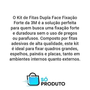 O kit de fitas dupla face fixação forte da 3m é a solução perfeita para quem busca uma fixação forte e duradoura sem o uso de pregos ou parafusos. Composto por fitas adesivas de alta qualidade, este kit é ideal para fixar quadros grandes, espelhos, painéis e placas, tanto em ambientes internos quanto externos.