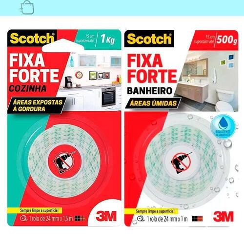 O kit de fita dupla face 3m fixa forte é a solução perfeita para todas as suas necessidades de fixação em banheiros e cozinhas. O kit inclui uma fita dupla face para uso em banheiros e outra para uso em cozinhas. Ambas as fitas são produzidas pela renomada marca 3m, garantindo qualidade e durabilidade.