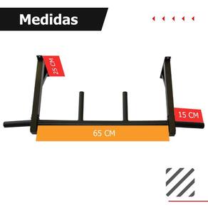 Especificações: - Peso suportado: 200 kg de Carga. - Produzido em Aço Carbono de alta resistência e qualidade. - Conteúdo da embalagem: Uma barra fixa 40 cm + paralela 50cm e parafusos para montagem e fixação. - Pode ser fixado em área externa no tempo que não enferruja. - de 12 Meses - Kit parafusos e buchas