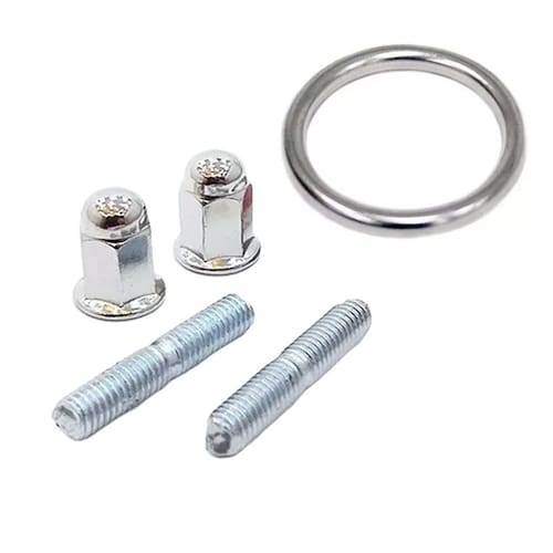 O kit inclui um anel de escape, duas porcas cegas e dois prisioneiros de 8mm, fornecendo todas as peças necessárias para fixar o escape de forma segura.