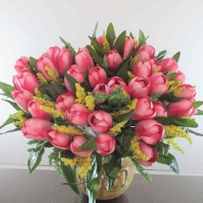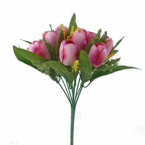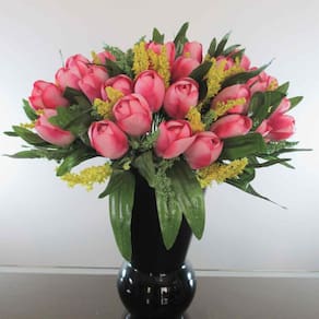 Kit Flores Artificiais 3 Buques de Tulipas Rosa Este buque de flores permanentes tem 12 botões de tulipas, folhas verdes e complementos com flores campestres verdes e amarelas. Para quem gosta de decoração delicada ele é perfeito e pode ser utilizado para decorar vários ambientes. Crie lindos arranjos e decorações com o buque de tulipas que parecem frescos o tempo todo. Também são muito utilizados em decoração de festas como centro de mesa e decoração da mesa principal. Características do produto - Altura: 30 cm - Largura: 20 cm - Detalhes: Cada buque de tulipa é composto por 12 botões da flor, folhagens verdes e complementos com flores campestres verde e amarelo. - Cores: o Laranja o Rosa o Creme o Amarelo - Composição: poliéster, plástico e arame - Quantidade:03 - SKU: DE9206-2 Informações importantes - Produto - As cores podem apresentar ligeira variação de tonalidade - As imagens dos arranjos são apenas ilustrativas - Possui um caule e folhagem flexíveis podendo assumir a posição que desejar - Você pode diminuir o tamanho da haste conforme sua necessidade - As plantas permanentes são embaladas de forma compacta e os caules dobrados. Isso não afeta a qualidade e beleza do produto, basta desdobra-los. Vantagens das flores artificiais As flores artificiais são presentes clássicos e duram muito tempo. Não precisam ser podadas, regadas ou expostas regularmente à luz solar. Elas são bem fáceis de cuidar, precisam somente de higienização periódica. Marca: Não Informado Ean: 7893979222794