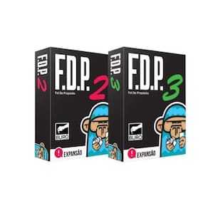 Kit foi de proposito expansão fdp 2 + fdp 3 buró Sobre expansão foi de proposito 2:Expansão com 50 novas cartas para o conjunto básico de fdp. São 40 novas cartas brancas com respostas e 10 novas cartas pretas com perguntas que podem e devem ser misturadas com as cartas do conjunto básico de fdp. Sobre expansão foi de proposito 3:Fdp 3 é uma expansão com 50 novas cartas para o conjunto básico de fdp. São 40 novas cartas brancas com respostas e 10 novas cartas pretas com perguntas que podem e devem ser misturadas com as cartas do conjunto básico de fdp. Você pode ser zoeiro, caotiqueiro, sutil, irônico, meter o louco ou o que achar melhor. A gente não se importa, o importante é ser engraçado Atenção: se este tipo de humor te incomoda ou não te faz bem, então faça textão no facebook, xingue muito no twitter e dê um escândalo. Mas depois compre o jogo, não seja um vacilãoNão nos responsabilizamos pelo estado mental e nem pelas ações cometidaspelos individuos que não sabem interpretar a intenção dos textos nesta caixa que obviamente é vender mais jogos . Este produto é uma expansão. Você precisará da caixa completa de fdp para usar a expansão fdp 2. Ficha técnica:Idade: 18+;Jogadores: 4 a 12;Duração: 60 minutos;Sleeve: 50 63.5 mm x 88.0 mm ;Categoria: expansão;Mecânicas: seleção de cartas;Temas: adulto; humor;Idioma: português br.Material: BaralhoModelo: Expansão Foi de Propósito