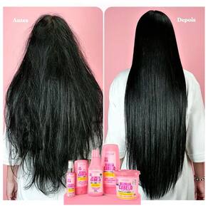 Sua fórmula contém poderosos ingredientes como Queratina brasileira, D’Pantenol, Colágeno