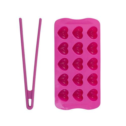 Kit forma de gelo coração e pegador de salada silicone pequeno - Mozcada