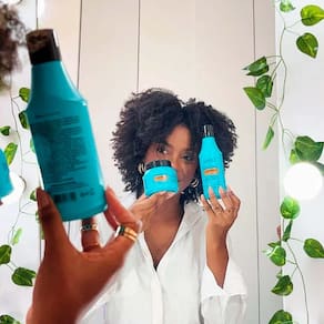 04. Após lavar, aplique a Máscara Cachos nos fios ainda úmidos, espalhando em todo o comprimento.