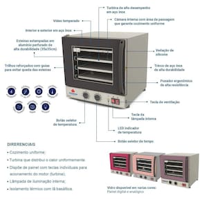 - Capaz de comportar até 8 assadeiras para alocar as formas de 35cm x 35cm