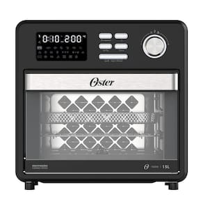 Kit Oster contendo Forno Fryer Multifunções Compact 10 em 1 com 21 funções, incluindo fritadeira sem óleo e forno por convecção, função turbo convecção, controle de tempo e temperatura, e Kit para Vinho Inspire com abridor elétrico, cortador de lacres, anel anti-gotas e bomba a vácuo.Forno autolimpante