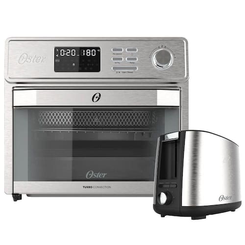 Descomplique sua rotina na cozinha com este kit completo da Oster. Prepare refeições incríveis e de grande porte com a versatilidade do Forno Fryer de 25 litros, e tenha pães sempre quentinhos e crocantes para o café da manhã ou lanches rápidos com a praticidade da Torradeira Simple Life.