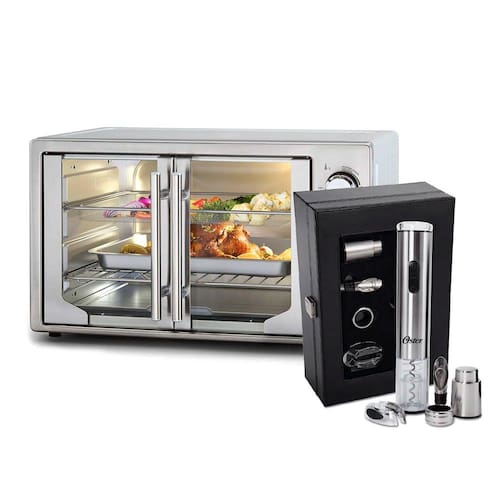 Forno e Fritadeira Sem Óleo Oster 42L French Door 2 em 1. A Praticidade de dois produtos em um só! Seu novo aliado para receitas especiais. Maximize suas opções na cozinha com o Forno e Fritadeira sem óleo French Door da Oster. 5 em 1: São 5 funções pré-programadas para tostar, assar, grelhar, assar por turbo convecção, esquentar e fritar sem óleo. Faça todos os seus preparos em um único produto! - Função Fritar sem óleo: Inclui função para fritar sem o uso de óleo, o que possibilita preparos mais saudáveis. - Função Convecção: Sua tecnologia para assar por convecção faz com que o ar quente circule por todo o forno, assando os alimentos de forma rápida e dourando de forma mais uniforme. - Capacidade de 42 Litros: Possui 42 litros e sua capacidade pode ser duplicada, pois possui duas prateleiras. Ideal para o preparo de duas receitas ao mesmo tempo. - Variação de temperatura: Controle de temperatura ajustável de 90°C a 230°C que possibilita o preparo de carnes e uma grande variedade de alimentos na temperatura ideal. - Exclusivo French Door: As portas possuem abertura compacta, ocupam menos espaço na bancada, deixando o espaço em frente às portas livre para utilizar de apoio para assadeiras e formas. - Fundo Curvo para Assadeiras: O fundo curvo aliado aos 42 litros permite assar pizzas de até de 40cm. Muito mais aproveitamento de espaço e pizzas para a família inteira em poucos minutos. - Acompanha Acessórios: Inclui bandeja, grelha e cesto para auxiliar em todos os preparos. Além da bandeja coletora de gordura, que traz praticidade para a limpeza. - Dimensões [LxAxP]: 550x325x490mm - Garantia 12 meses - Selo de Segurança OCP SGS