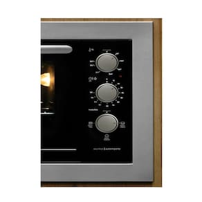 O Forno Elétrico Fit Line da Fischer conta com 48L de capacidade, seletor e níveis de temperatura que chegam a até 320ºC, timer, luz interna, 1 grade deslizante de inox, opção de grill e bandeja para remoção de resíduos. O Forno Fit Line é um produto de embutir que conta com um design sofisticado, com um painel analógico, porta com vidro duplo serigrafado e acabamento em aço inox que trazem todo destaque e maior elegância ao ambiente, além disso, é um produto com várias funções para preparar suas receitas com a maior praticidade e eficiência, são elas: assar, dourar, tostar, gratina e aquecer. Sua parte interna possui revestimento autolimpante que ocorre através do processo de volatização.