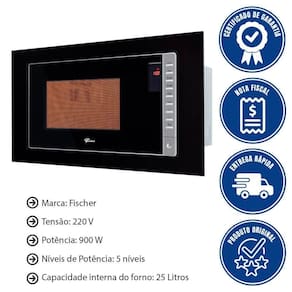 - O sonho da cozinha planejada passa por vários detalhes, e para que você tenha mais uma opção na hora de montar seu ambiente, a Fischer apresenta o Micro-ondas de Embutir Fischer Fit Line 25 litros com função descongelar.