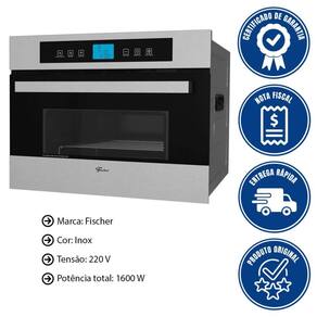 MICRO-ONDAS FISCHER PLATINIUM DE EMBUTIR 35 LITROS 127V INOX COM GRILL E SISTEMA FLAT PLATE 17411(18915)
