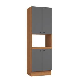 Com até sete camadas de pintura, a caixaria possui acabamento touch na cor canela, com a textura dos veios da madeira, enquanto as portas, em MDP e acabamento BP, são mais resistentes contra riscos, arranhões e gotas d'água, e na cor cinza sagrado, possuem acabamento fosco. Uma combinação elegante e moderna, que dará ainda mais destaque ao seu espaço, deixando sua cozinha perfeita.