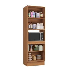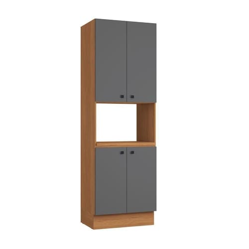 Para um melhor acabamento, a cristaleira conta com rodapés, mas acompanha as ferragens para ser montada suspensa, e se preferir, pode adquirir os pés separadamente, garantindo muita praticidade. A peça ideal para quem busca por otimização de espaço na vertical, medindo 220cm de altura, 70cm de largura e 52cm de profundidade, conta com quatro portas e quatro prateleiras, além de uma prateleira reforçada em 25mm para eletrodomésticos, como forno ou microondas. Fechando ótimas combinações com balcões e aéreos, o destaque fica para as dobradiças com amortecimento, garantindo um fechamento suave e sem ruídos, incluindo mais durabilidade.