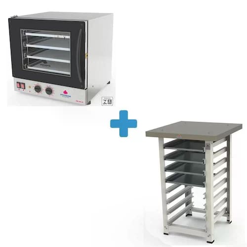 Kit - Forno Turbo Elétrico Fast Oven Prp-004 + Bancada Mes-004 + 4 Assadeiras - Progás