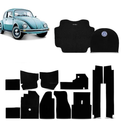 KIT FORRAÇÃO INTERNA FUSCA 1970 A 1995 ASSOALHO CARPETE COM TAPETE DE PORTA MALA E CAPA DE ESTEPE PRETO 13 PEÇASO kit de Forração para Fusca permite proteger o assoalho do carro com peças modeladas exclusivamente para ele. O jogo de carpete para forrar o interior do Fusca é composto por 11 peças.Para ficar completo, esse jogo de revestimento para assoalho acompanha tapete para porta malas do Fusca e capa de estepe para proteger o pneu reserva do carro.COMPATÍVEL COM:- Fusca 1970- Fusca 1971- Fusca 1972- Fusca 1973- Fusca 1974- Fusca 1975- Fusca 1976- Fusca 1977- Fusca 1978- Fusca 1979- Fusca 1980- Fusca 1981- Fusca 1982- Fusca 1983- Fusca 1984- Fusca 1985- Fusca 1986- Fusca 1987- Fusca 1988- Fusca 1989- Fusca 1990- Fusca 1991- Fusca 1992- Fusca 1993- Fusca 1994- Fusca 1995CARACTERÍSTICAS- Material: Carpete com acabamento em viés- Cor: Preto- Modelado no Formato Ideal para o Carro- Proteção Contra Sujeira e Poeira- Não Danifica o Assoalho e Pode ser Retirado- Acompanha Capa de Estepe com ElásticoITENS INCLUSOS:- 01 Acabamento traseiro dos pedais- 02 Caixa de ar- 02 Túnel completo- 04 Tapete para os pés em carpete- 02 Revestimento caixas de rodas dianteiros- 01 Tapete de porta malas- 01 Capa de estepeOBSERVAÇÕES:- Garantia de 3 meses contra defeitos de fabricação- Imagens ilustrativas- Não nos responsabilizamos pelo uso inadequado do produto Não deixe de conhecer nossos outros produtos!