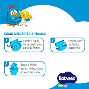Contém no kit: • Fralda Descartável Babysec Galinha Pintadinha Ultrasec M Com 68 Unidades - 2 Unidades