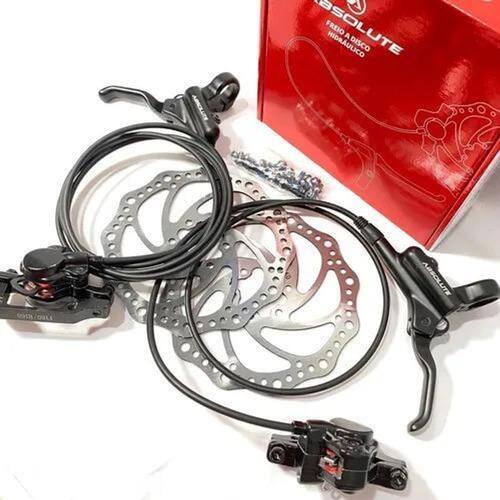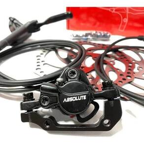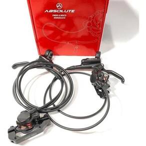 - marca: absolute - freio já montado - modelo: dxu-16 - material: alumínio/ aço carbono / aço inox - cor: preto - peso: 1,09kg aproximadamente - rotores em aço inoxidável disco de 160mm - compatibilidade: quadros/ garfos com sistema is mount e/ou post mount - contém: 2 discos, 2 manetes, 2 mangueiras, 2 caliper pinças e pastilhas de freio e 12 parafusos - comprimento de mangueira: dianteira 90cm / traseira 160cm - não necessita de sangria