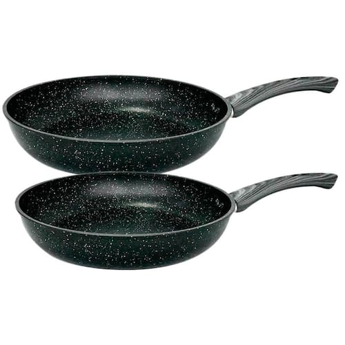 Características: Marca: Casambiente Referência: AL134 AL135 Modelo: Zebra Material da Frigideira: Alumínio Material do Cabo: Baquelite Soft-Touch Revestimento Interno: Cerâmico Espessura: 2,5mm Cor: Preto Quantidade: 2 peças