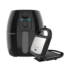 Kit Cadence com Fritadeira Sem Óleo 3L Pratic Fryer e Sanduicheira Elétrica Toast & Grill Prime Inox. A fritadeira possui capacidade de 3 litros, potência de 1250W e temperatura ajustável de 90°C a 200°C. A sanduicheira tem acabamento em inox, potência de 750W e baixo consumo de energia (0,75KWH).Funciona como grill