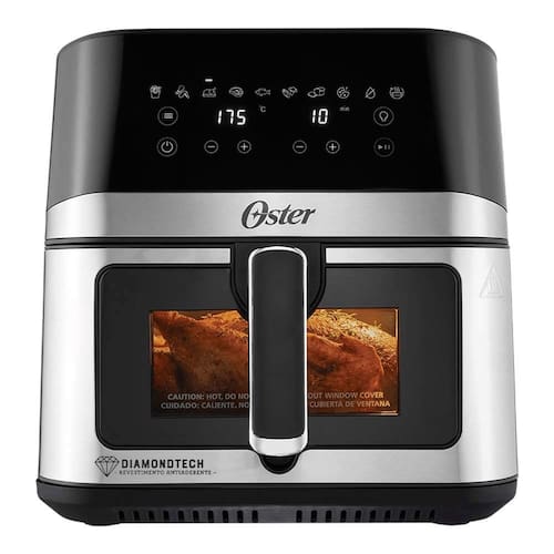 Kit Oster com Fritadeira DiamondTech 7,5L (1700W/1600W) com tecnologia antiaderente DiamondTech, painel touch com 10 funções, cesto com visor removível e Blender Power Inox (700W) com 2 jarras To Go (600ml e 475ml) e 4 lâminas em aço inox.Porta-fio