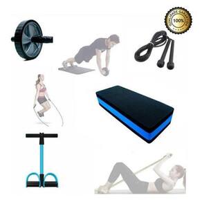 - Roda abdominal - Extensor elástico com apoio para pés - Step em Eva 60x30x10cm - Corda de pular