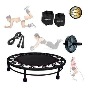 Kit Funcional Jump + Roda + Corda + Caneleira 4 Kg Kit para treino aeróbico em casa e definição corporal no conforto de casa Fazer ginástica da melhor forma possível com os seguintes produtos: - Mini Jump - Roda Abdominal - Corda de pular - Caneleira 4 kg