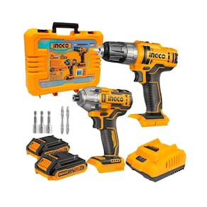 Parafusadeira de impacto encaixe sextavado brushless 1/4 ingco à bateria íon-lítio 20v e parafusadeira e furadeira ingco 3/8 à bateria íon-lítio 20v cosli230708-9