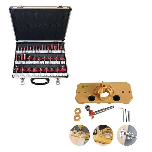 Gabarito de Furação Para Dobradiças Khi-Hinge - CHARBS + Kit com 35 Fresas para Tupia 6mm Maleta Alumínio Charbs