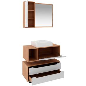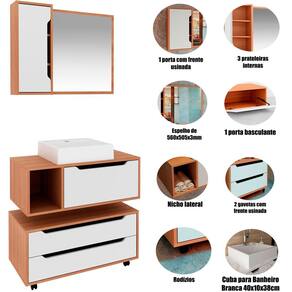 Kit Gabinete Balcão e Espelheira de Banheiro Cuba Karina - Branco