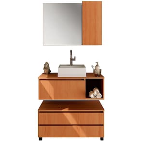 • Altura: Gabinete: 26,5 cm/Espelheira: 80 cm/Balcão: 38 cm/Cuba: 10 cm