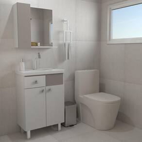 Conta com uma gaveta e duas portas com dobradiças amortecedoras, garantindo fechamento suave e maior durabilidade. O modelo com pés facilita a limpeza do banheiro.
