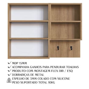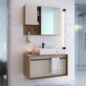 Transforme seu banheiro com este conjunto moderno e funcional, que une requinte, praticidade e organização. Gabinete é equipado com um puxador/toalheiro em aço com pintura epóxi, uma gaveta espaçosa e design pensado para facilitar o uso diário. A Espelheira se destaca por seu nicho aberto, suporte para toalhas, montagem flexível (direita/esquerda), além de uma porta com espelho e prateleiras internas para armazenar seus itens de forma organizada. Um grande diferencial é a comodidade de ter suas toalhas sempre à mão, sem necessidade de furar paredes. O conjunto acompanha uma cuba de mármore sintético moderno, completando o visual elegante e funcional do ambiente. Ideal para quem busca otimizar espaço com estilo. Este móvel chegará em sua casa separado em 03 Volumes.