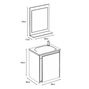 Gabinete para banheiro suspenso de 40 cm, um espaço interno muito bom pelo seu tamanho, de fácil montagem e instalação, praticidade para quem busca um gabinete de pequeno porte, ele possui uma porta, acompanha pia de mármore sintético e espelheira. Acabamento da Cuba: Pintura UV Acabamento da Porta: Pintura UV Acompanha Cuba: Sim Acompanha Gaveteiro: Não Acompanha Manual de Instalação: Sim Acompanha Tampo: Não Acompanha Válvula: Não Altura do Espelho: 35 cm Ambiente Principal: Banheiro codigo_ean: 7900288278944 Complexidade da Montagem: Baixa: pode ser montado por uma pessoa sozinha Cor: Branco/Freijó Cor da Cuba: Branco Cor da Porta: Branco Cor do Produto: Branco/Freijó Cor Interna: Branco Escala de Brilho: Brilhante Escala de Brilho da Porta: Brilhante Espessura do Espelho: 3 mm Formato da Cuba: Retangular Formato do Espelho: Retangular Formato Espelheira: Retangular Furação para Cuba e Torneira: Sim Itens Inclusos: 1 Gabinete, 1 Cuba, 1 Espelheira, Kit Ferragens e Manual de Montagem Largura do Espelho: 30 cm Linha ou Coleção: Apollo Manual de Montagem e Instalação: https://product-hub-prd.madeiramadeira.com.br/385443496/documents/e61ea875-4256-460b-8636-a8e76f2461903295223664217616571097031.pdf Marca: Arte Gabinetes Material da Cuba: Mármore Sintético Material da Porta: MDF Material Principal: MDF/MDP Medida da Cuba (C x L x P): 40x30x10 Medida da Espelheira (A x L x P): 45x36x11 Medida do Gabinete (A x L x P): 44x38x29 Necessita Montagem: Sim Origem do Produto: Nacional Peso: 10 kg Possui Espelheira: Sim Possui Gabinete: Sim Possui Gavetas: Não Possui iluminação: Não Possui Nichos: Não Possui Pés: Não Possui Porta de Vidro: Não Possui Rodízio: Não Possui Sifão: Não Possui Tampo: Não Produto Montado: Não Quantidade de Espelhos: 01 Recomendações de Uso, Manutenção e Limpeza: Limpador Multiuso, Lustra móveis Sistema de Montagem: Parafusos e Cavilhas Suporta Até (kg): 2,5 kg Suporte para Toalheiro: Não Tamanho do Espelho (A x L): 35x30 Tamanho do Gabinete: Pequeno: Abaixo de 60cm de largura Tamanho do Produto: 44x38x29 Tipo de Cuba: Semi-Encaixe Tipo de Dobradiça/Corrediça da Porta: Metálica Tipo de Fixação do Espelho: Fita Dupla Face Tipo de Gabinete: Gabinete Aéreo Tipo de Porta: Abrir Tipo de Puxador da Porta: Cava Válvula indicada: nao Marca: Não Informado