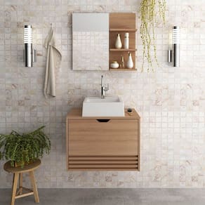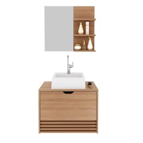 O Kit para Banheiro é a escolha ideal para transformar o seu espaço em um ambiente elegante e organizado. Com um design atual, ele oferece não apenas beleza, mas também funcionalidade, contribuindo para um banheiro agradável e útil. Produzido com materiais de alta qualidade, o kit garante durabilidade e resistência, criando um ambiente harmonioso e agradável para o seu dia a dia. CARACTERÍSTICAS TÉCNICAS: - Produzida em MDP de 15 mm - Acabamento UV na cor Amêndoa - Cuba em Mármore Sintético - Acompanha Espelho - Porta Basculante com Articulador e Dobradiças Metálicas - Gaveta com Corrediças Metálicas - Puxador tipo Cava - Balcão Suspenso *Kit Composto por Gabinete Suspenso (3613), Espelheira (3608) e Cuba (3630) INFORMAÇÕES TÉCNICAS: 3613: Alt. 44,7 cm x Larg. 60 cm x Prof. 38,7 cm x P. 12,65 kg 3608: Alt. 54 cm x Larg. 60 cm x Prof. 15,6 cm x P. 6,2 kg 3630: Alt. 11,5 x Larg. 35 x Prof. 334 cm P. 5,5 kg INFORMAÇÕES ADICIONAIS: - ATENÇÃO: Não trabalhamos e não nos responsabilizamos pela montagem do móvel. Antes da montagem conferir se o produto está de acordo com o que comprou, produto montado e danificado pela montagem não será aceito troca. Montagem e instalação por conta do comprador. - As imagens ambientadas são meramente ilustrativas e podem apresentar itens que não compõe o produto. As cores do produto podem variar de acordo com o monitor, a iluminação do ambiente ou sua percepção visual. - Limpeza: Deve ser feita com pano macio e seco ou levemente. Não devem ser utilizados abrasivos como palha de aço e objetos cortantes. Garantia para defeitos de fabricação conforme Código de Defesa do Consumidor.