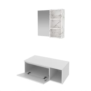 O Kit para Banheiro é a escolha ideal para transformar o seu espaço em um ambiente elegante e organizado. Com um design atual, ele oferece não apenas beleza, mas também funcionalidade, contribuindo para um banheiro agradável e útil. Produzido com materiais de alta qualidade, o kit garante durabilidade e resistência, criando um ambiente harmonioso e agradável para o seu dia a dia. CARACTERÍSTICAS TÉCNICAS: - Produzida em MDP de 15 mm - Acabamento UV na cor Branco e Mármore Branco - Acompanha Espelho - Cuba em Mármore Sintético - Porta Basculante com Dobradiça e Articulador - Balcão Suspenso - Puxador tipo Cava *Kit Composto por Gabinete Suspenso (3601), Espelheira (3609) e Cuba (3630) INFORMAÇÕES TÉCNICAS: 3601: Alt. 26,5 x Larg. 80 x Prof. 38,7 cm P. 10,8 kg 3609: Alt. 54 cm x Larg. 60 cm x Prof. 15,6 x P. 7,65 kg 3630: Alt. 11,5 x Larg. 35 x Prof. 34 cm P. 5,5 kg INFORMAÇÕES ADICIONAIS: - ATENÇÃO: Não trabalhamos e não nos responsabilizamos pela montagem do móvel. Antes da montagem conferir se o produto está de acordo com o que comprou, produto montado e danificado pela montagem não será aceito troca. Montagem e instalação por conta do comprador. - As imagens ambientadas são meramente ilustrativas e podem apresentar itens que não compõe o produto. As cores do produto podem variar de acordo com o monitor, a iluminação do ambiente ou sua percepção visual. - Limpeza: Deve ser feita com pano macio e seco ou levemente. Não devem ser utilizados abrasivos como palha de aço e objetos cortantes. Garantia para defeitos de fabricação conforme Código de Defesa do Consumidor.