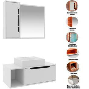 • 1 x Gabinete de Banheiro 80 cm com 1 Porta e Nicho 1 x Espelheira para Banheiro 80 cm com 1 Porta 1 x Cuba para Gabinete de Banheiro Manual de Montagem Acessórios de Montagem