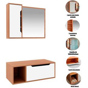 • 1 x Gabinete de Banheiro 80 cm com 1 Porta e Nicho 1 x Espelheira para Banheiro 80 cm com 1 Porta Manual de Montagem Acessórios de Montagem