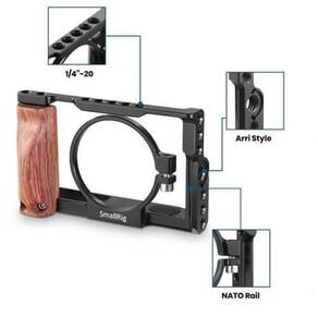 O Kit Gaiola Cage SmallRig 2105 com Punho Handgrip para Sony RX100 V / IV / III é um quadro de proteção com Alça Punho Handgrip Lateral de Madeira Removível e várias opções para a montagem de acessórios em sua Câmera Sony Cyber-Shot. Múltiplas Roscas 1/4-20 para Acessórias estão embutidas na Gaiola Cage, uma Montagem de acessórios do estilo ARRI e um trilho da Nato estão embutidos na Gaiola SmallRig.O Kit Gaiola Cage SmallRig 2105 com Punho Handgrip de Madeira mantém acesso aos controles e portas da Câmera quando montado na sua Câmera Sony Cyber-Shot RX100 V / IV / III. Construída a partir de uma liga de alumínio, esta Gaiola Cage para Sony SmallRig prende-se ao redor da montagem da lente e inclui roscas de tripé de 1/4-20 e 3/8-16 na parte inferior.Principais Características: A primeira Gaiola Cage do mundo para Cyber-Shot Sony RX100 M3 / M4 / M5 / M5A. Encaixa de Forma Perfeita e Firme com o anel da lente e fácil acesso às portas e botões. Punho Handgrip Lateral de Madeira Removível para uma experiência emocionante e confortável ao fotografar. Interfaces versáteis Múltiplas Roscas 1/4-20, Trilho NATO e Montagem ARRI para fixação de acessórios externos.Compatibilidade: Câmera Sony Cyber-Shot DSC-RX100 VCâmera Sony Cyber-Shot DSC-RX100 IVCâmera Sony Cyber-Shot DSC-RX100 III Ean: 0725932299567