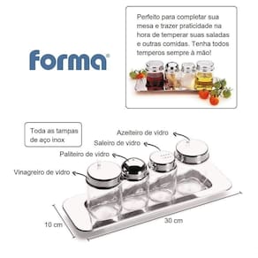 Com formas modernas, tenha a praticidade do Galheteiro 5 peças à sua mesa com a qualidade reconhecida Forma Utilidades. Sua salada fica ainda mais gostosa!