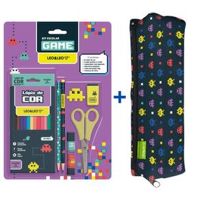 Kit Game Escolar Estojo + Lápis + Cola + Tesoura + Borracha + Apontador - Leo&Leo