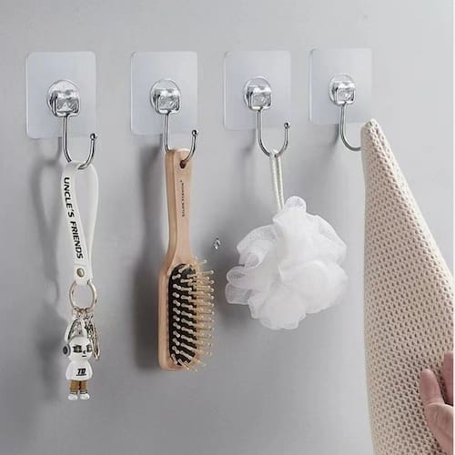 - Kit com 10 ou 15 unidades da sua escolha! - Remova a película protetora atrás do gancho - Colar na parede e empurrar com força para extrudar o ar interno. Colar na parede e empurrar com força para extrudar o ar interno. - Não pendurar itens dentro de 24hrs - Material: Plástico Transparente - O Gancho é capaz de suportar até 10kg.