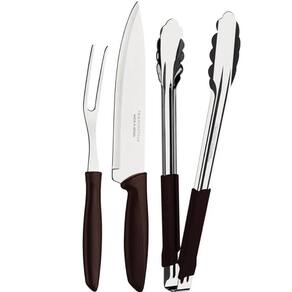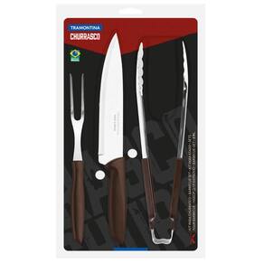 Kit Garfo Trinchante Pegador Faca Churrasco 8'' Tramontina Plenus 3 Peças Marrom.