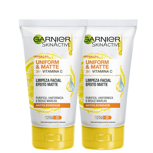 Garnier SkinActive Uniform & Matte Vitamina C - Gel de Limpeza Facial 120g: fórmula enriquecida com Vitamida C, que estimula o colágeno e melhora a textura da pele. Uniformiza e reduz imperfeições da pele. Remove impurezas e maquiagem, sem agredir a pele.